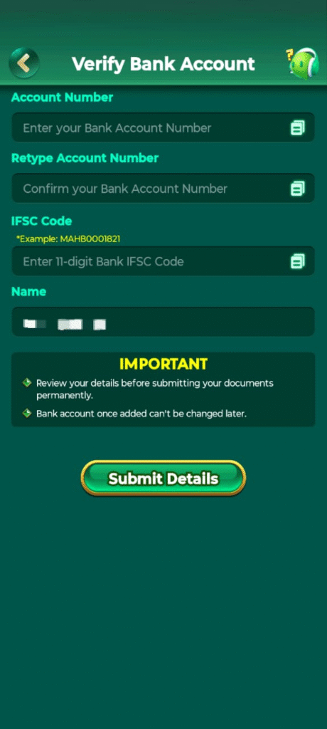 To verify your bank account number in CLUB INR application, first of all you have to click on the bank icon from where you can verify your bank account You can easily verify your bank account number by entering the number, bank’s IFSC code and account holder’s name.