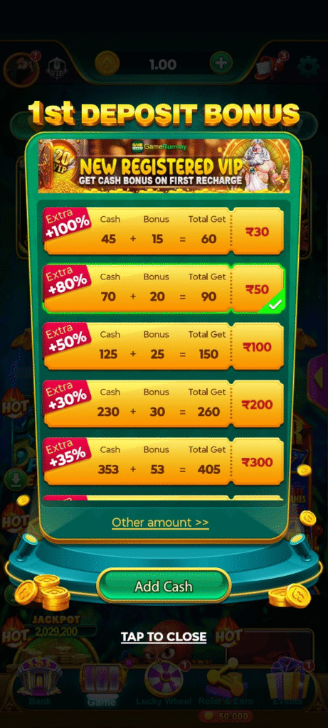 My dear friend, to deposit cash in Game Rummy application, first of all you have to open this application, after that you have to deposit cash on bank’s Icon You have to click where you will get the option of Add Cash from where you can deposit cash as per your wish and you can earn a good amount by playing games.