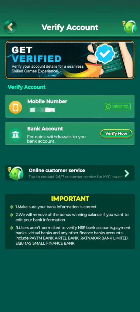 To verify your bank account number in OK Rummy application, first of all you have to click on the bank icon from where you can verify your bank account You can easily verify your bank account number by entering the number, bank’s IFSC code and account holder’s name.