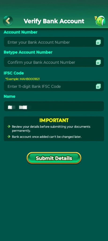 To verify your bank account number in Saga Slots application, first of all you have to click on the bank icon from where you can verify your bank account You can easily verify your bank account number by entering the number, bank’s IFSC code and account holder’s name.